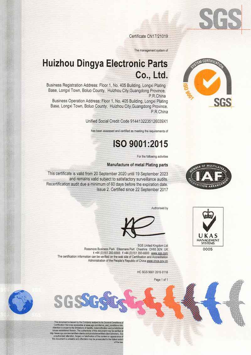 惠州ISO 9001:2015认证证书(英文)